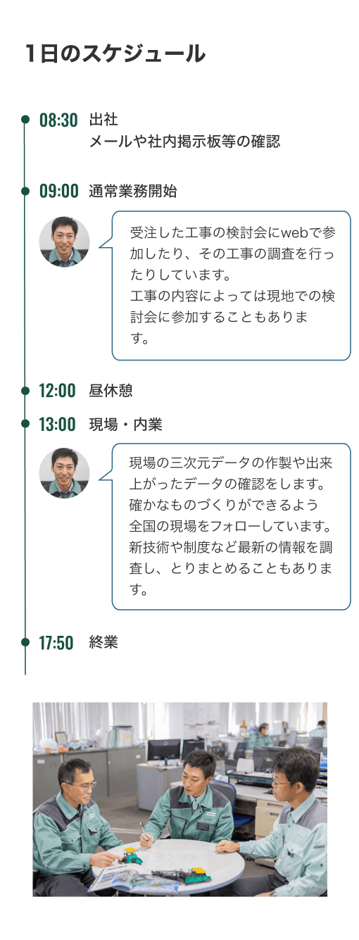 道路機械の専門家になると同時に、現場の施工システム全体を俯瞰して設計できるようになりたいですね。機械の性能だけでなく、安全性の向上など、現場が抱える課題解決につながるような開発を進めていきたいと考えています。 あとはプログラミングの学習にも力を入れ、現場管理アプリの開発なども手掛けてみたいと思っていて。スマートフォンやタブレットを活用することで、もっと効率的で安全な施工管理が実現できるはずです。 機械開発のスペシャリストとして専門性を追求しつつ、システム化のゼネラリストとしての視座も持つ。そんな両面からアプローチできるエンジニアを目指して、日々研鑽を積んでいきます!