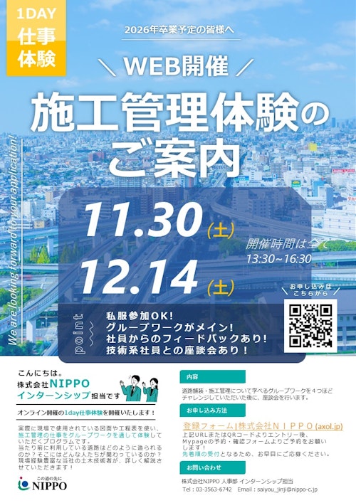 グループワーク終了後には、若手社員との座談会も行いますので、施工管理業務に興味がある方はぜひご予約下さい!